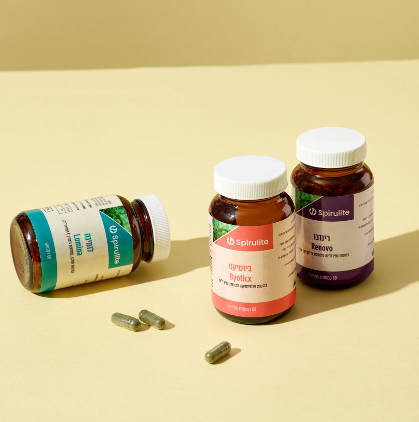 כל פורמולה שלנו משלבת בין ספירולינה – אצה טבעית המוכרת כמקור לרכיבים תזונתיים מגוונים – לבין רכיבים שנבחרו בקפידה בהתאם לאופי השגרה שהמוצר נועד לתמוך בה.